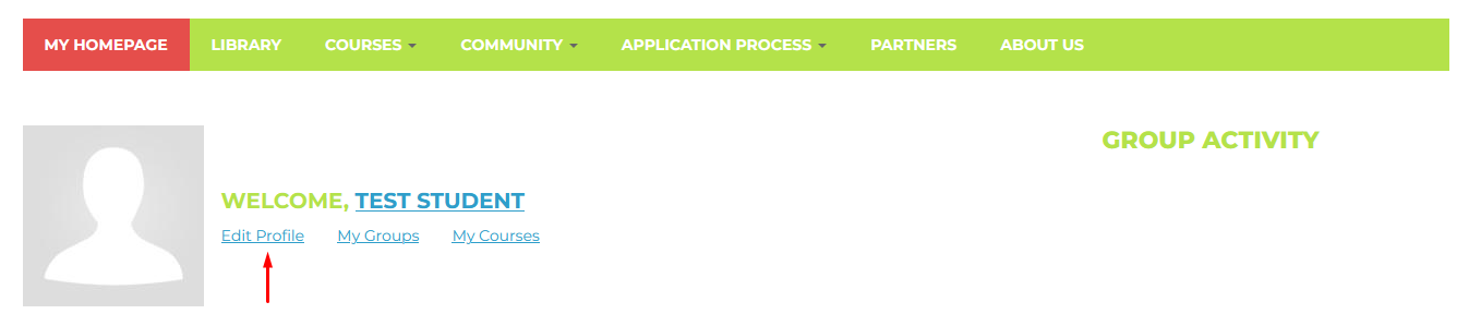 Once you are on your homepage, click on the "Edit Profile" link below your name.